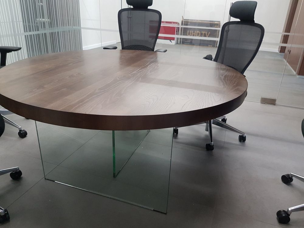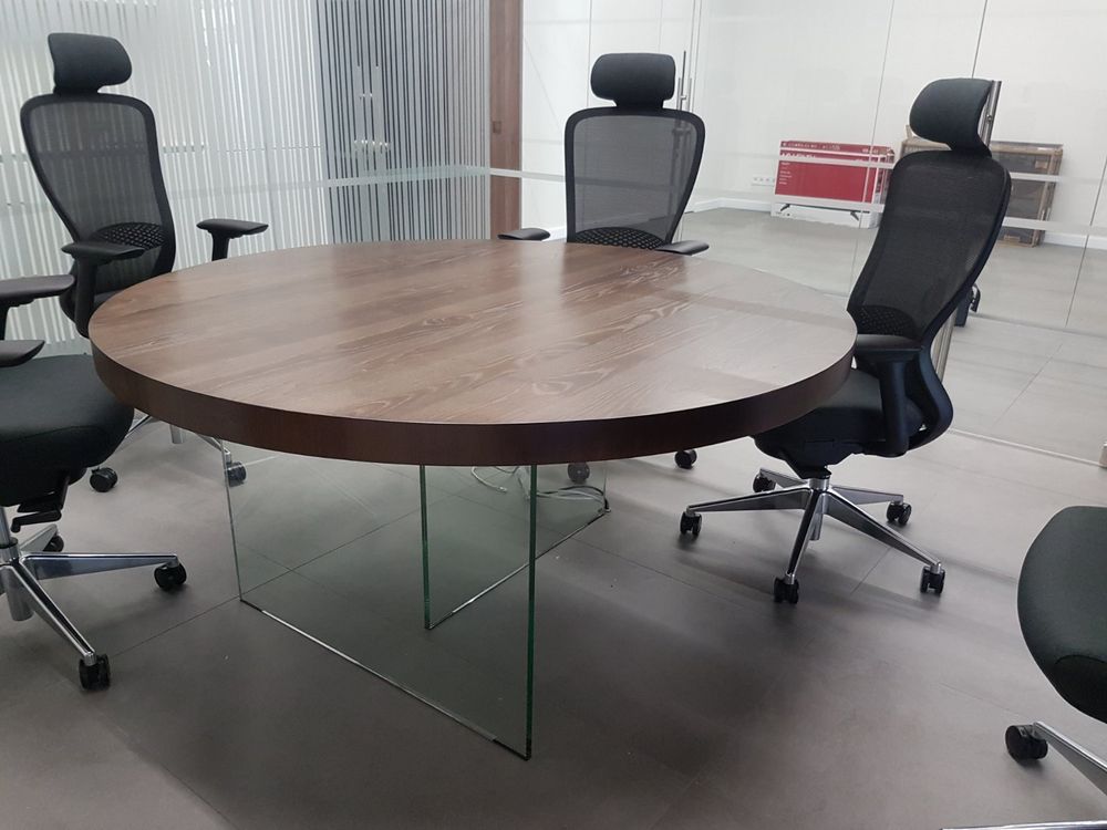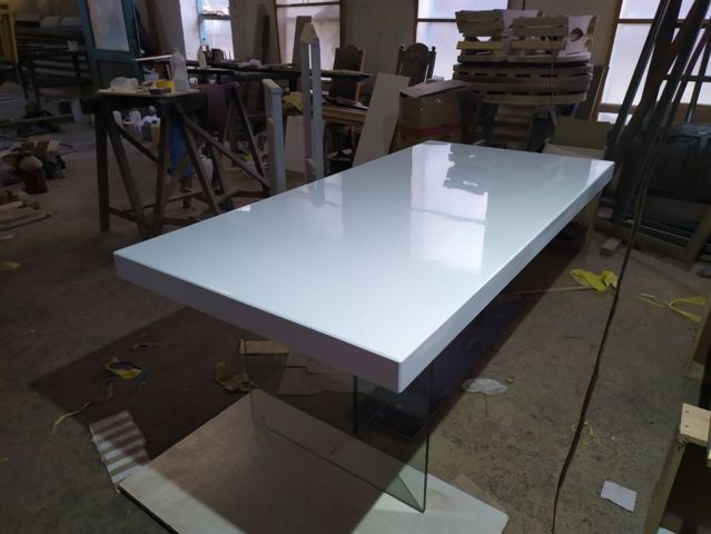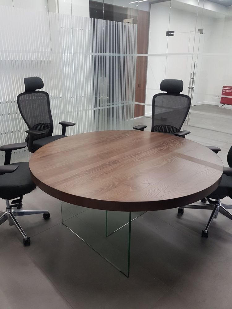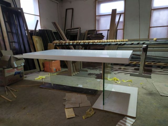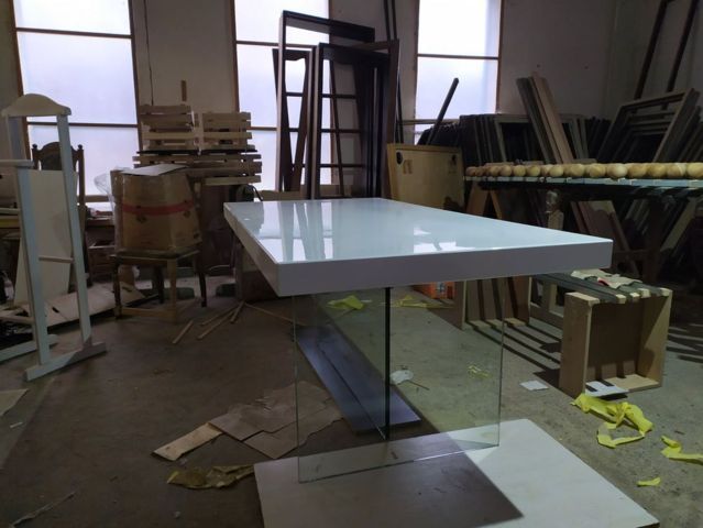 Судя по тому, что в интернете ничего подобного близко нет, а выдача по словосочетанию «Дизайнерские столы» меня просто «убила» простыми моделями, которые даже визуально смотрятся странно, просто и дешево, наши модели должны понравится любителям минимализма. В общем, я загорелся идеей. Продумали технологию, просчитали экономику, сделали первый образец одному из наших постоянных заказчиков: столешница из МДФ, с толщиной 70 мм в глянце с стеклянными ногами из каленого триплекса. Такой себе получился столик весом под 150 кг. Расположение ног сделали перпендикулярным, но можно делать и параллельное расположение. Почти сразу приняли несколько первых заказов и начинаем отлаживать процессы по производству и продаже. Наши столы могут использоваться в квартире, в доме, и в офисных помещениях. Стол на стеклянных ножках может примыкать с кухонному столу, а может стоять отдельно. Мы можем изготовить и невысокий журнальный столик, а можем сделать полноценный обеденный стол для всей семьи. Стол может быть круглым, овальным, прямоугольным. Такие столы могут стоять в офисе крупной компании, в конференц-зале, переговорной. Изысканно он будет смотреться и в вестибюле компании. При необходимости стекло можно выбрать: бронза, черный триплекс и так далее. Стол можно изготовить по вашему эскизу. Все детали согласовываются, по каждому столу с производства делается контрольный звонок заказчику, и проговариваются все детали. А если стол делается из массива или покрывается шпоном, то образец отделки предварительно отсылается заказчику на утверждение. Таким образом, ваш стол будет полностью индивидуальным. Этот стол станет центром уюта вашего дома, за ним будет приятно встречаться всем членам семьи. Самые выгодные контракты будут заключаться у вас в офисе, если вы приобретёте стол на невидимых / стеклянных ножках.