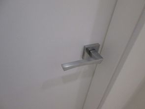 Рекомендуемая фурнитура. К гладким белым дверям подойдёт любая фурнитура, но более выигрышно будут смотреться дверные ручки с квадратной розеткой.