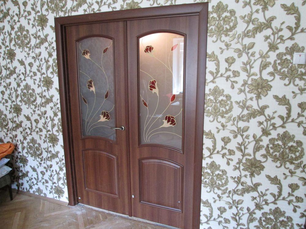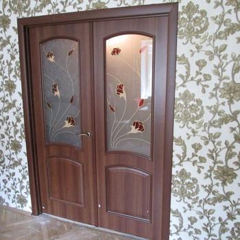 Двойные двери Аве ПВХ в цвете орех